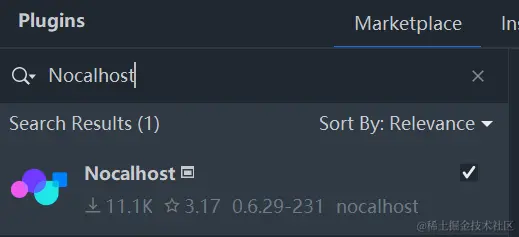 通过文件 > 设置 > 插件 > 浏览插件仓库... > 搜索 "Nocalhost" > 安装插件"