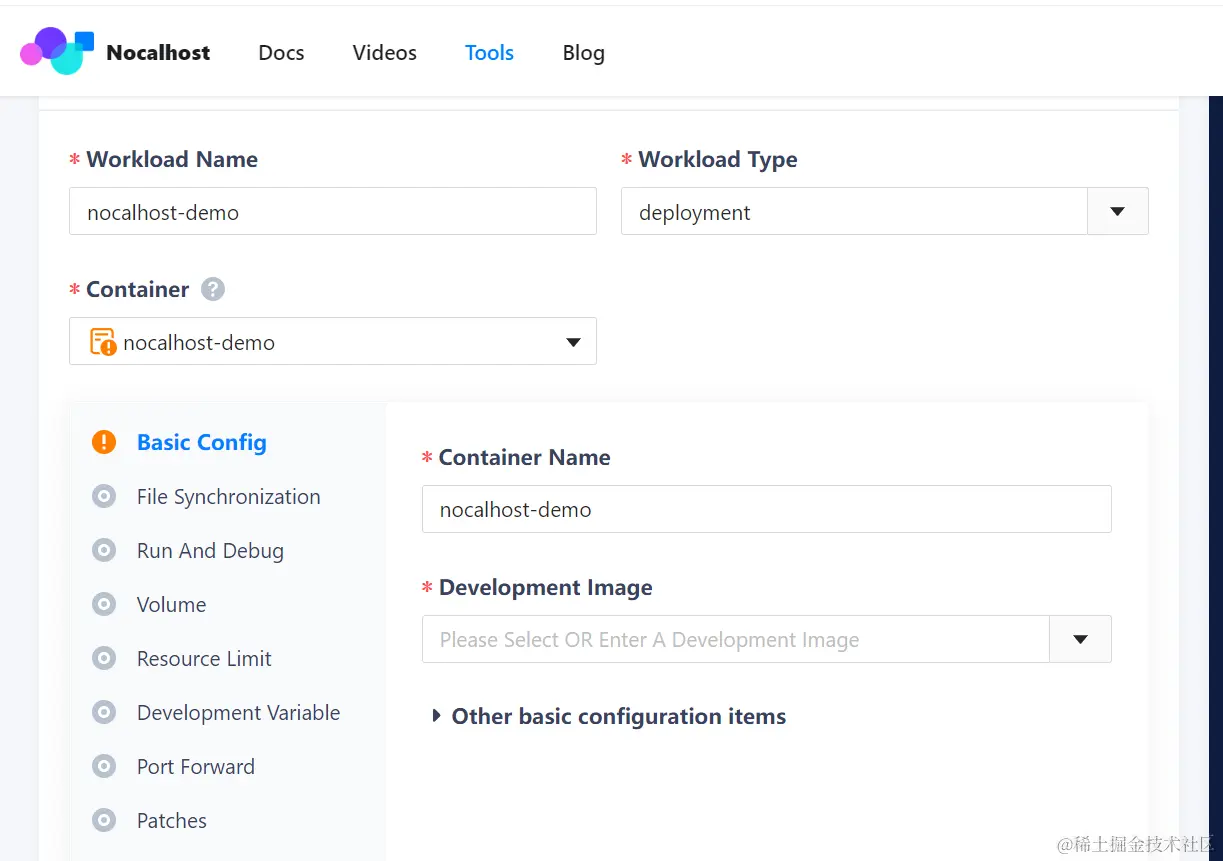 其实就跳转到这个链接nocalhost.dev/zh-CN/tools,填好相关信息,选择应用即可