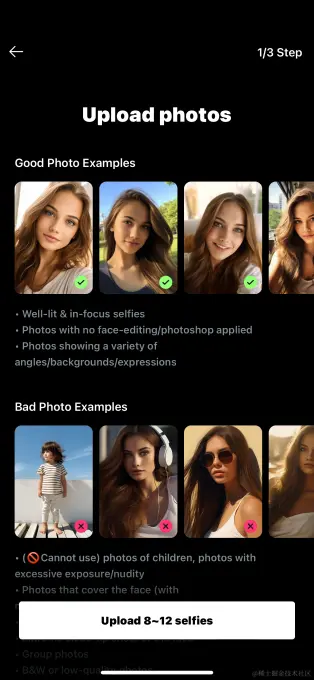 为了使用EPIK的年鉴功能,用户上传8-12张自拍图像,然后用于创建AI照片。