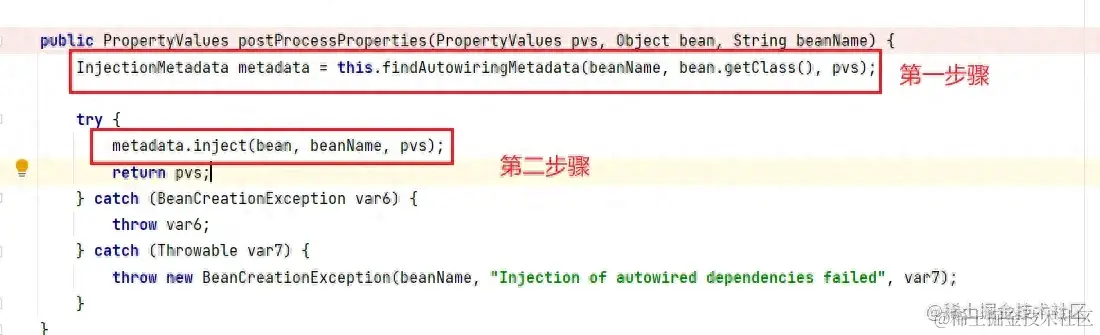 AutowiredAnnotationBeanPostProcessor进行解析的。它的流程分为两步,第一:找到类中@Autowired标注的的属性或者函数;第二:到容器去找到对应类型的bean去注入。