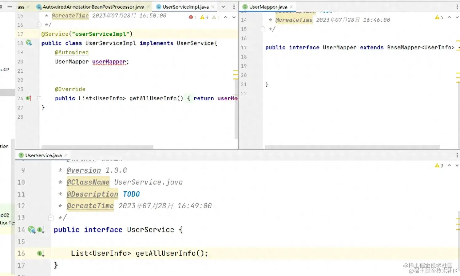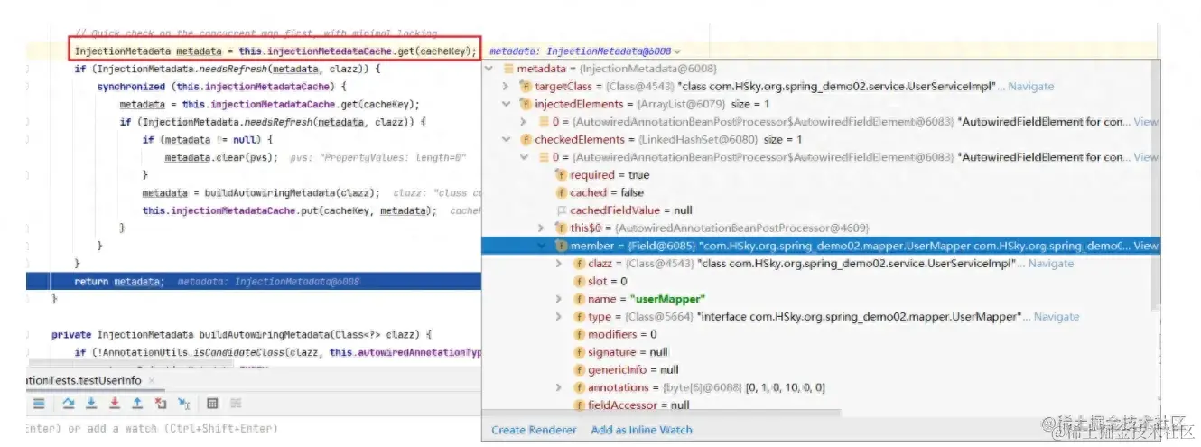 返回的元数据中有userServiceImpl中用@Autowired标注的属性“userMapper”