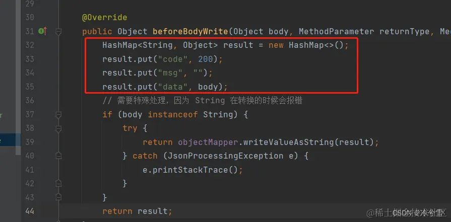 2.实现ResponseBodyAdvice接口,并重写supports和beforeBodywrite (统一对象就是此方法中实现的)