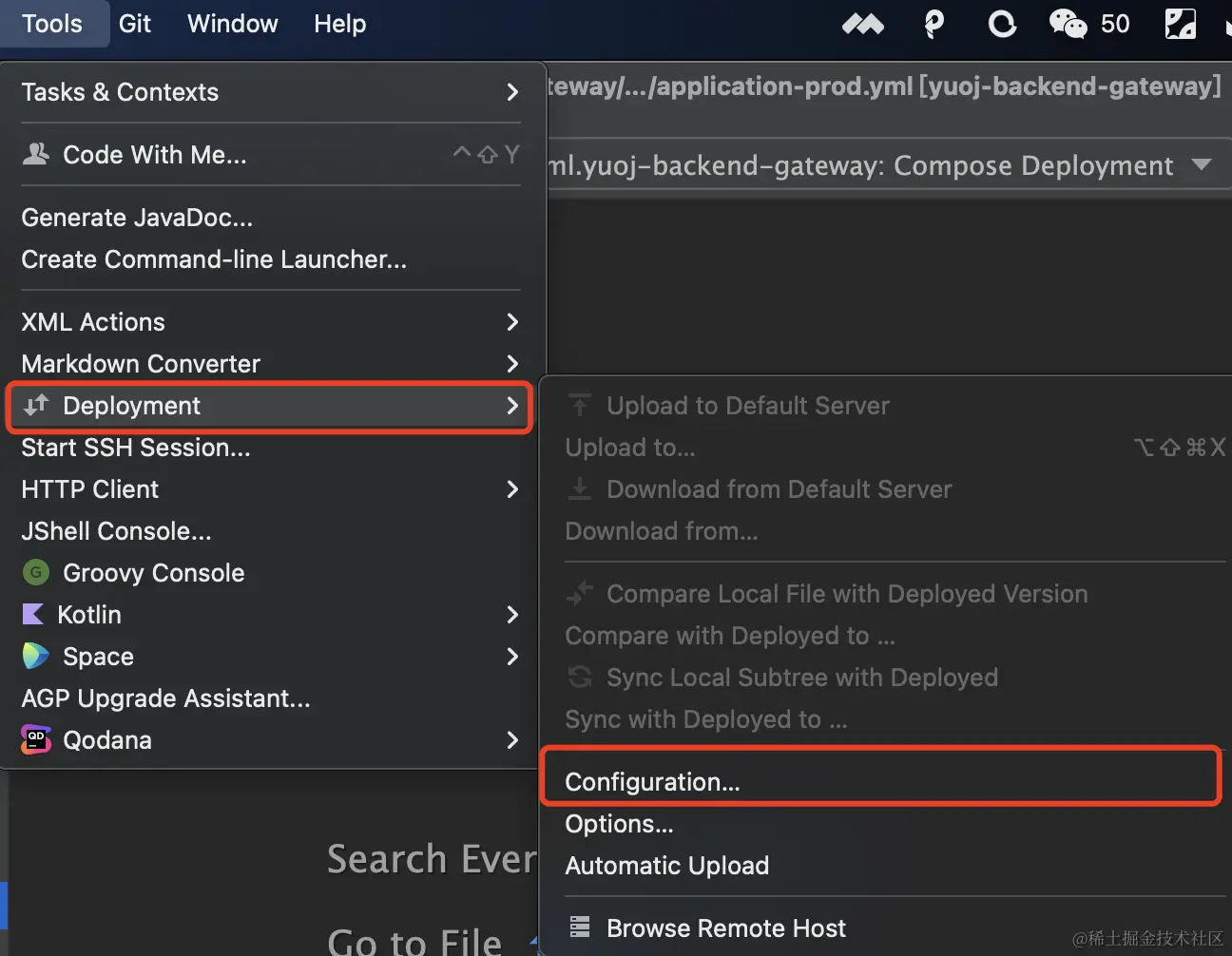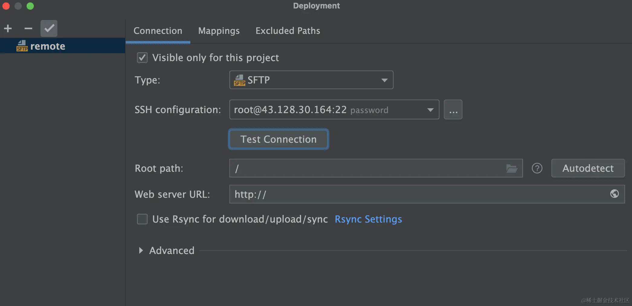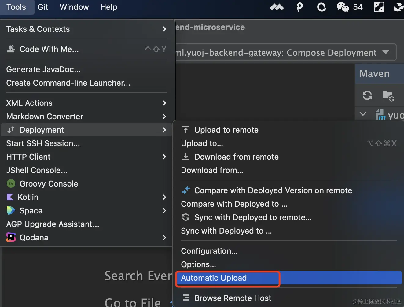 我这里使用 JetBrains 开发工具的远程部署功能,可以配置文件自动上传,步骤如下: