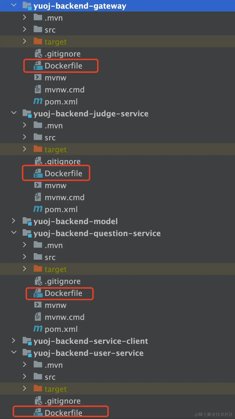修改所有需要启动 Spring Boot 的服务(用户服务、题目服务、判题服务、网关服务)的子模块 pom.xml 文件。