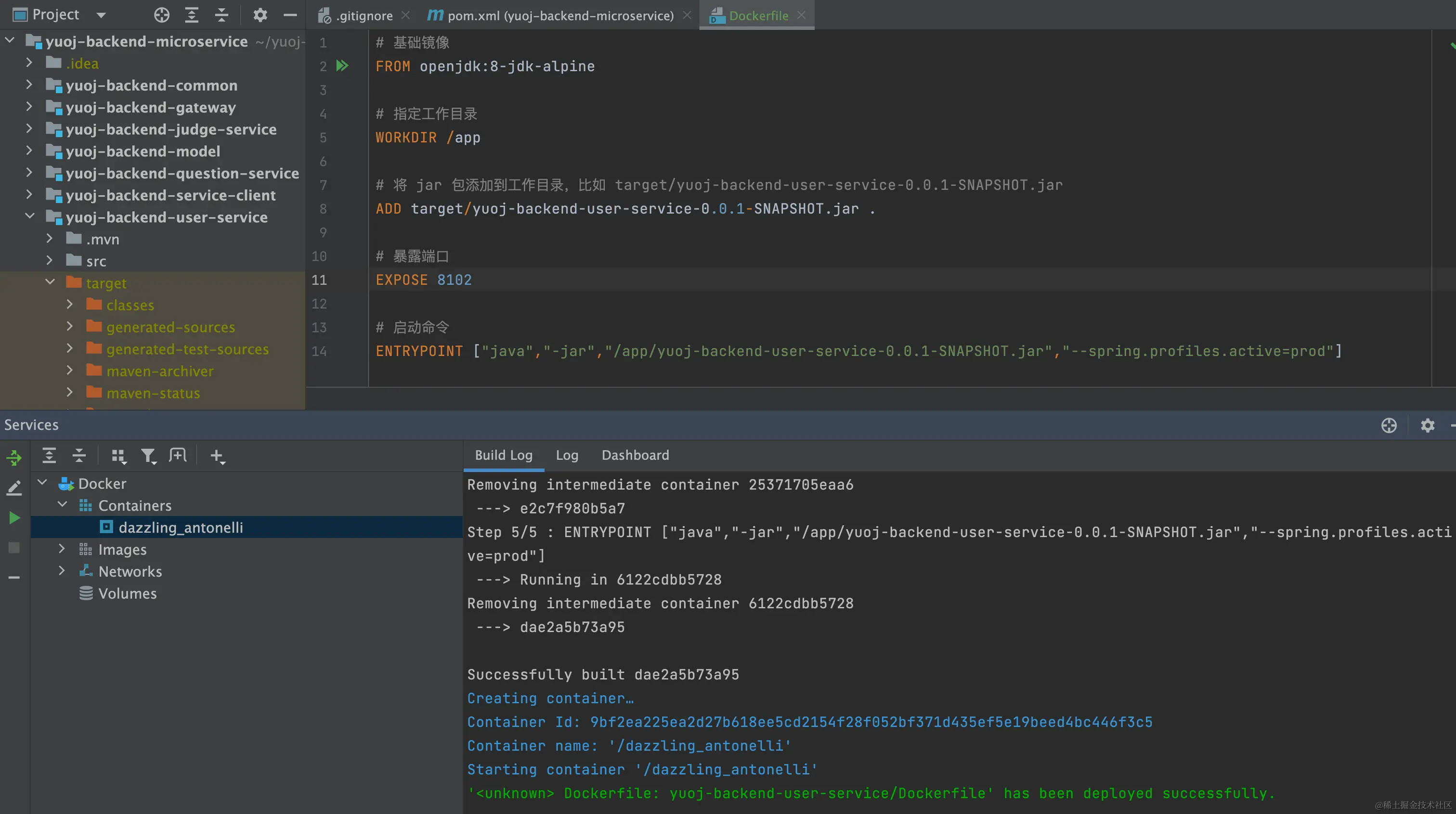 对于微服务项目,我们通常是使用 Maven 的子父模块功能进行管理的。需要部署项目时,不用针对每个子服务单独执行 mvn package 命令进行打包,而是可以一键打包所有服务。