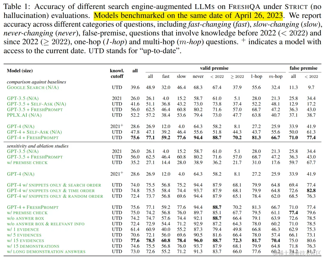 总体来说,FRESHQA 对当前的 LLM 来说确实是一个挑战,指出了很大的改进空间。