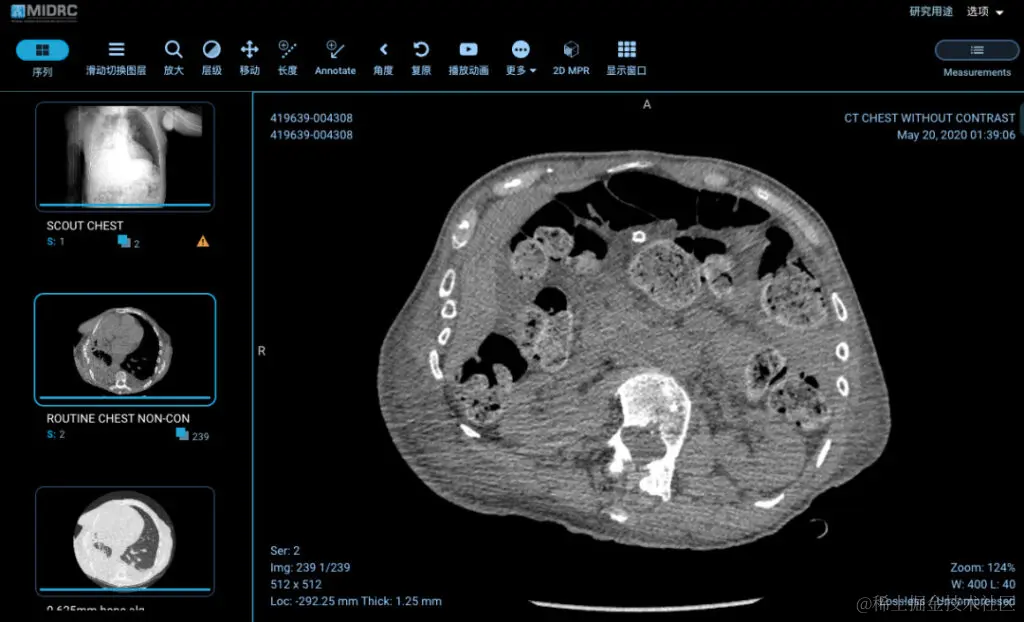 图 5:MIDRC 数据库内一位 79 岁患者的胸部 CT