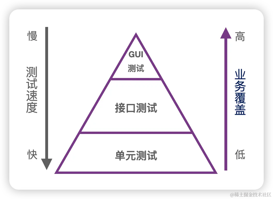 UI自动化测试体系的建设价值遵循测试金字塔模型,该模型建议测试人员在不同层次上编写和执行测试。UI测试需要编写和设计测试脚本、执行完整的应用程序,并模拟用户与应用程序交互,因此UI测试的测试速度相对较慢。但是UI测试的业务覆盖很高,通过模拟真实场景下的用户行为,详细测量UI组件的功能性和稳定性,可以有效消除人工测试所面临的大量重复性测试问题。