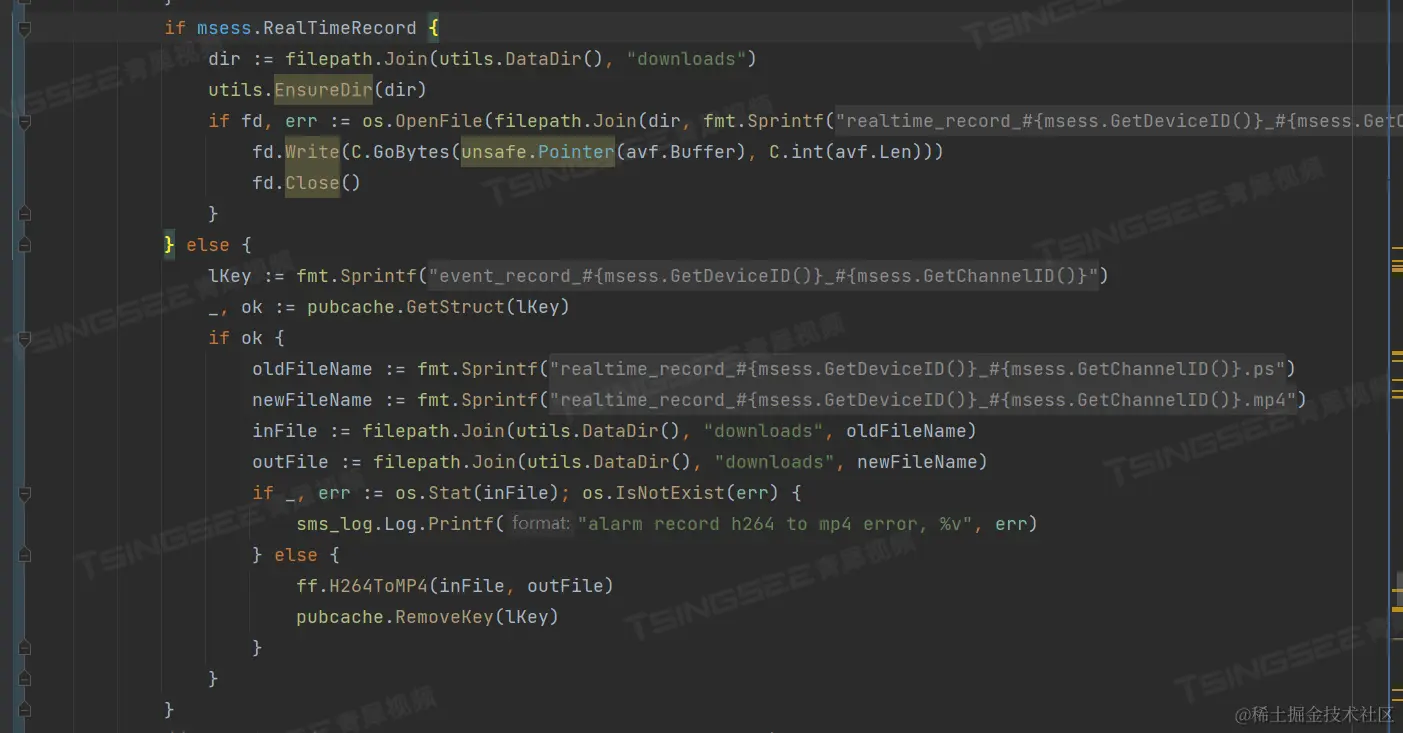 3)在解析流数据时,判断是否保存录像、合成录像:
