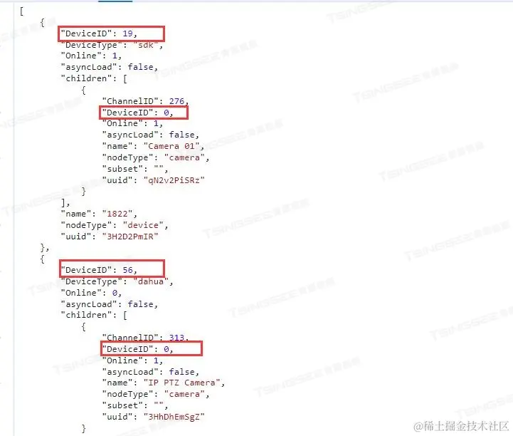 根据用户反馈,我们立即进行了排查。排查中发现,在调用搜索接口后,查询的数据只有以国标GB28181协议接入的设备是正常的,其他协议接入如RTMP、RTSP、SDK等方式,都会出现这个问题,是因为通道给的DeviceID数据为0导致的异常。