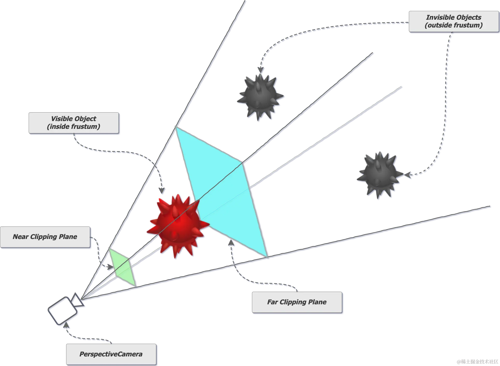 - far , 远裁剪平面。任何比这更远离相机的东西都是不可见的。