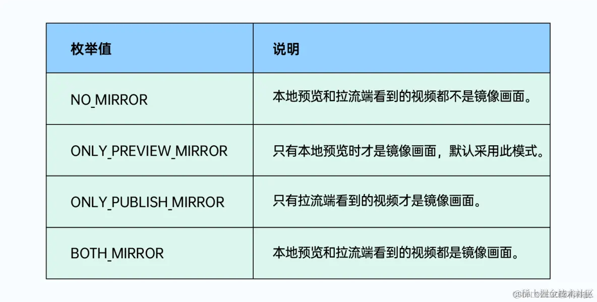 你可以调用 setVideoMirrorMode