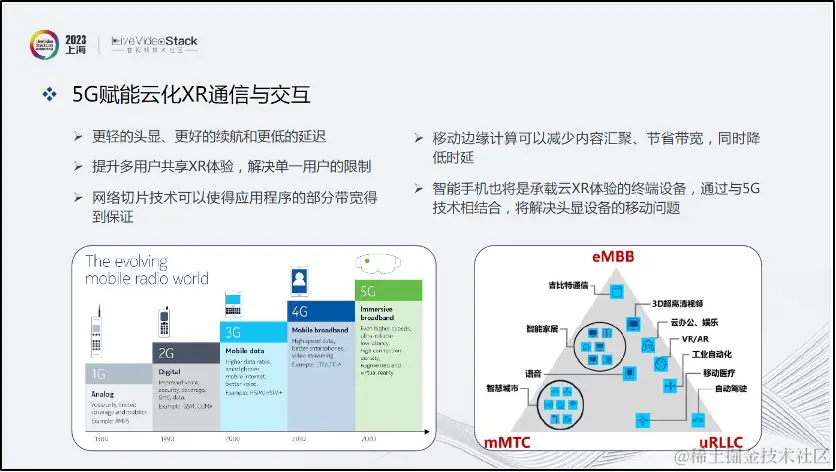 首先5G的网络切片技术保证了应用程序的部分带宽、移动边缘计算(MEC)减少了内容汇聚,在节省带宽的同时降低了时延,为XR云化部署奠定了技术基础。