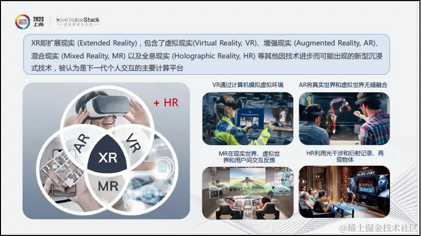 最后,在常规XR概念的基础上拓展引入了HR,与VR不同,它可以利用光干涉和衍射记录进行真实物体的再现,还原真实的人物与环境。