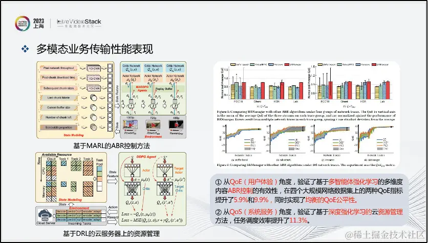 我们采用多智能体强化学习的方式实现多维度内容ABR控制,从而最大程度保证不同用户的QoE。