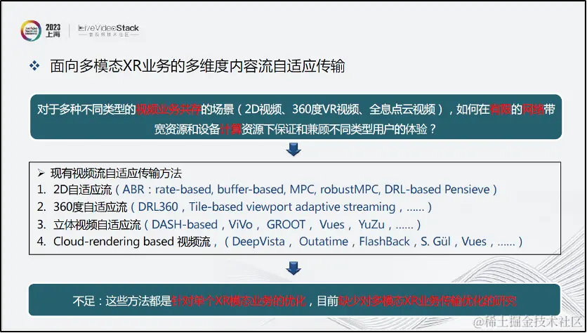 除了单纯的3D全息点云实时交互外,我们也在思考面对混合模态视频XR业务场景的解决方案,但现有视频流自适应传输方案都是针对单模态业务的优化。