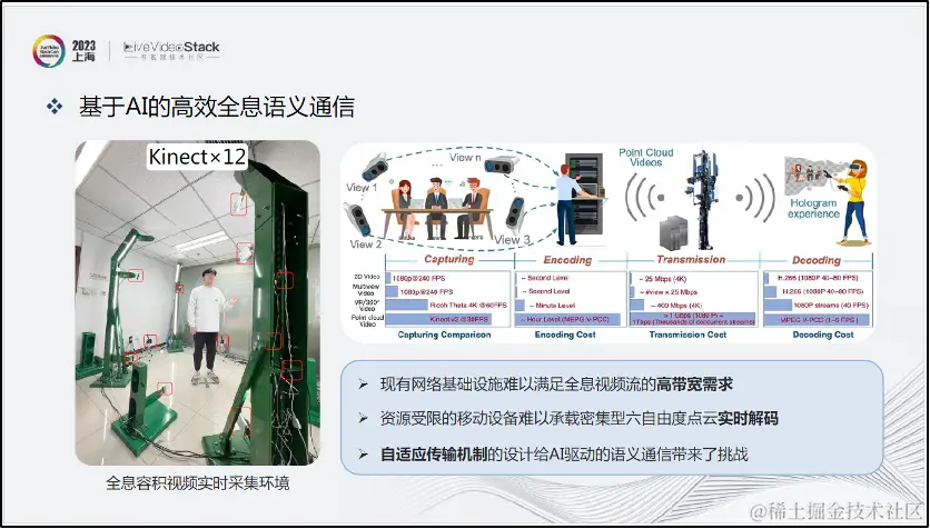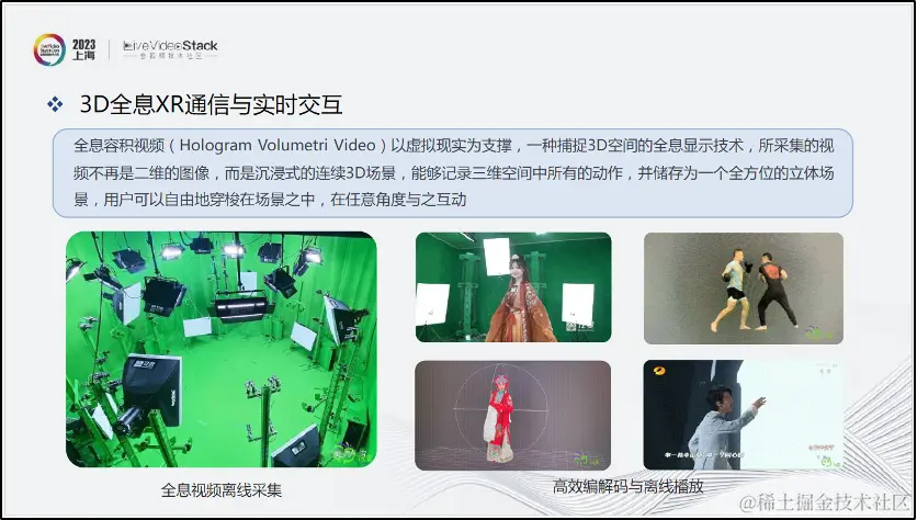 全息容积视频是一种捕捉3D空间的全息显示技术。而实现3D全息视频实时采集、传输与交互是沉浸式XR的关键挑战。相对于视频的捕捉采集,我们更多地关注它从传输、通信到最终在终端呈现的过程。