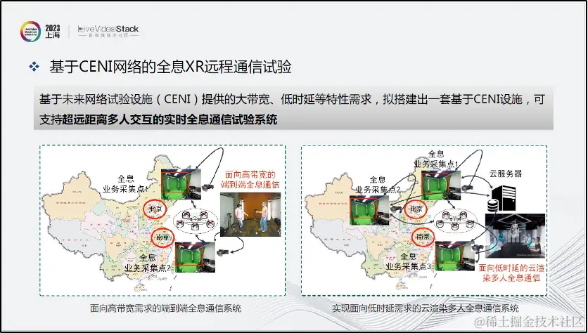 基于未来网络试验设施(CENI)提供的大带宽、低时延等特性需求,从创造承载高清全息XR的网络条件考虑,我们拟搭建出一套基于CENI的设施,可支持超远距离多人交互的实时全息通信试验系统。