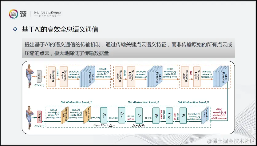 由于基于AI的点云编解码方案对计算和存储的要求较高,资源有限的终端设备难以实现实时解码交互。因而我们提出了面向任务的轻量化传输机制,采用兴趣感知选择技术提取局部用户感兴趣的内容,同时采用剪枝、量化等网络轻量化技术,极大地降低了AI传输模型的参数和推理速度,提高了解码效率。