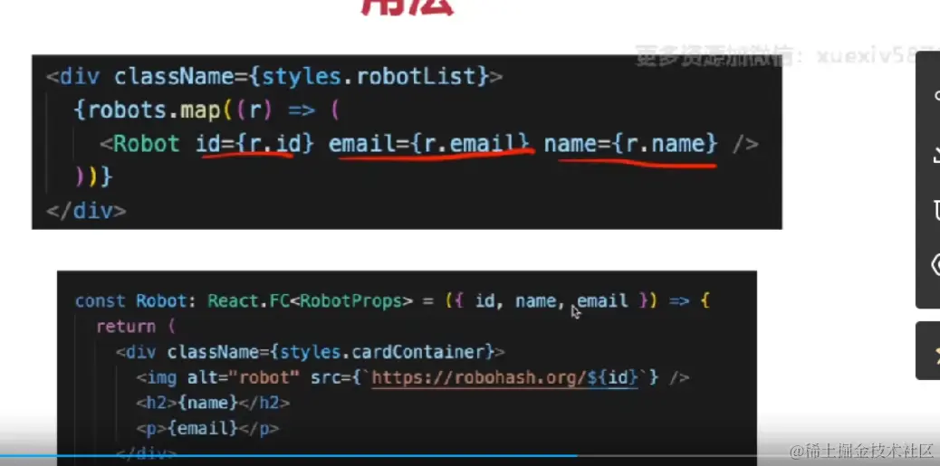 robots.map(r=> <Robot name={r.name} id={r.id} email={r.email} />)