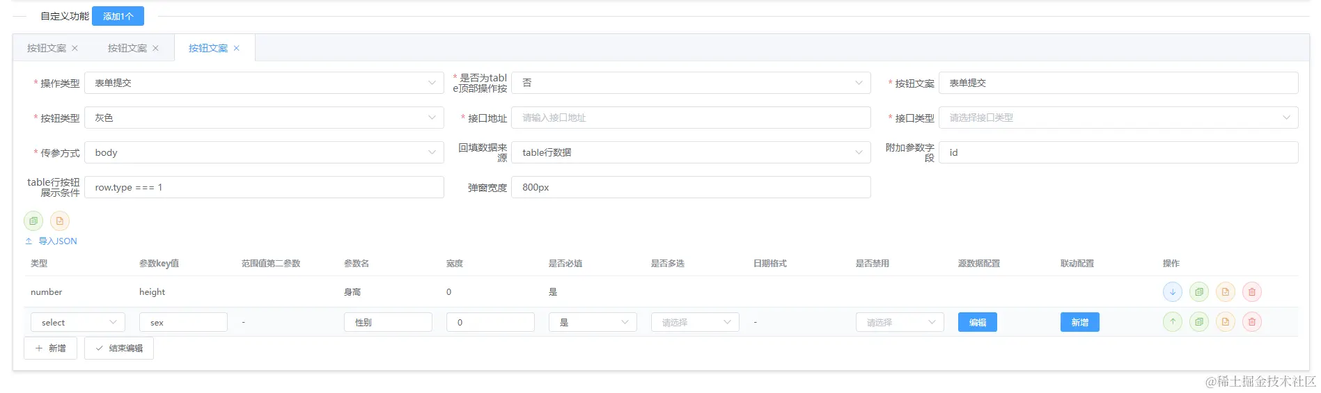 rowParam: '', // 当前行需要传递的参数字段,如id、id,name,多个采用,隔开既可