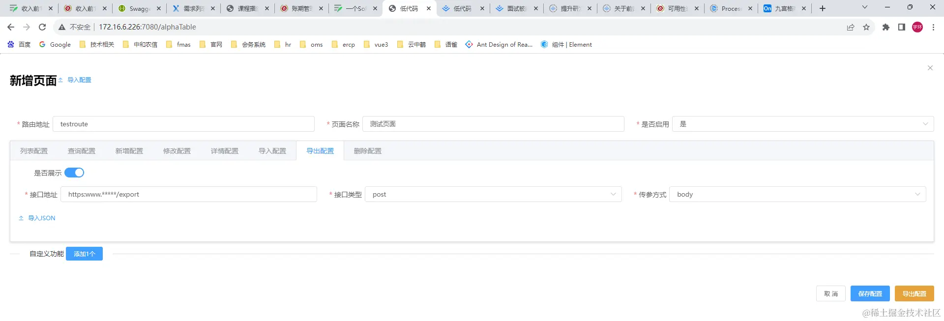 导出操作:configExport
