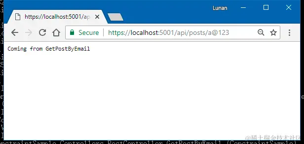 这时候我们添加新的action方法GetPostByEmail, 并追加一个email约束,方法如下: