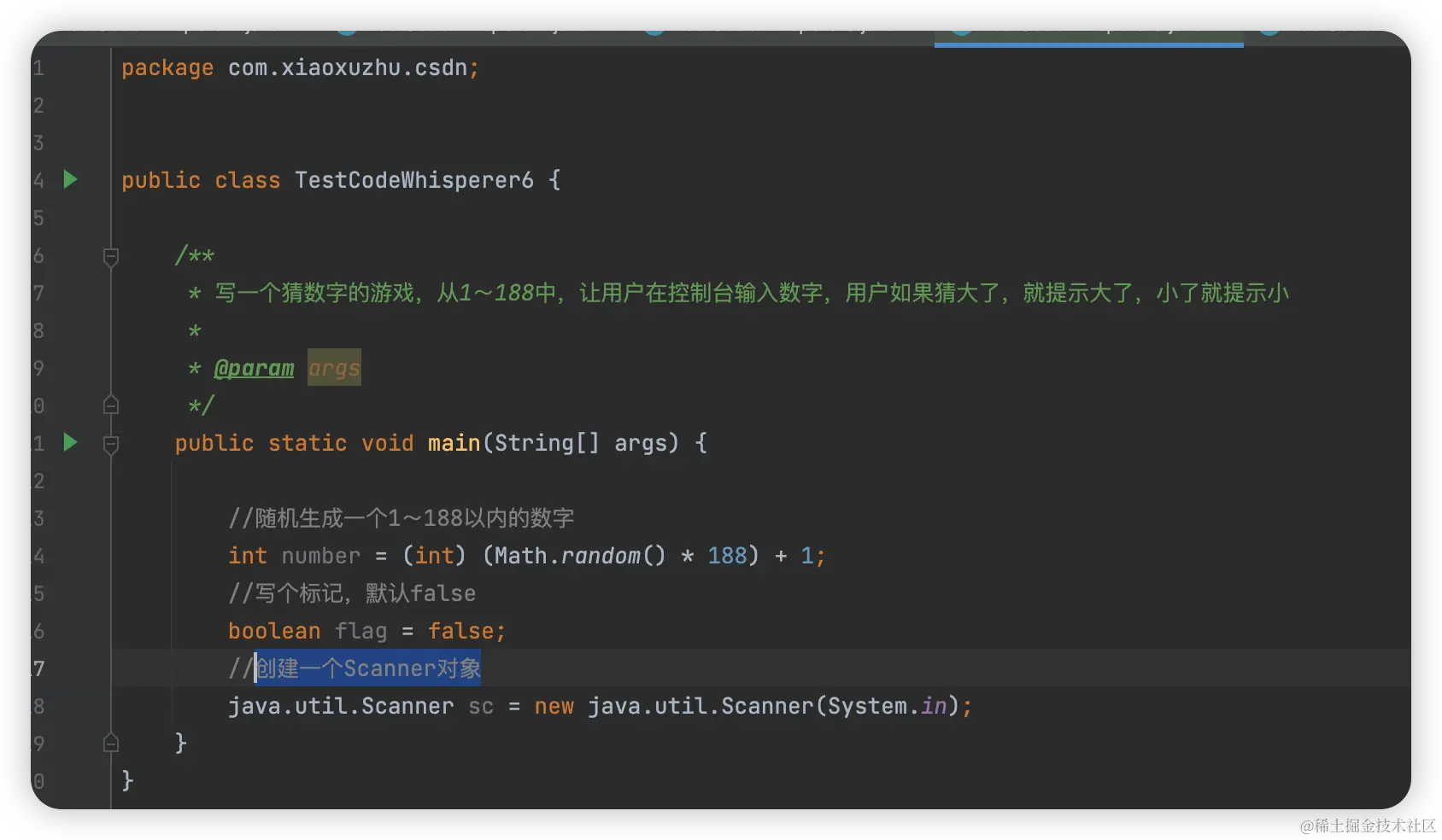 我们要编写一个猜数字的游戏。在这个游戏中,计算机会生成一个1到188之间的随机数,并等待用户在控制台输入数字进行猜测。如果用户猜大了,程序会提示用户数字太大了;反之,如果用户猜小了,程序会提示用户数字太小了。