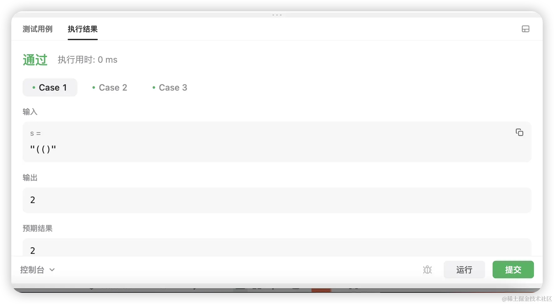 给你一个只包含 '(' 和 ')' 的字符串,找出最长有效(格式正确且连续)括号子串的长度。