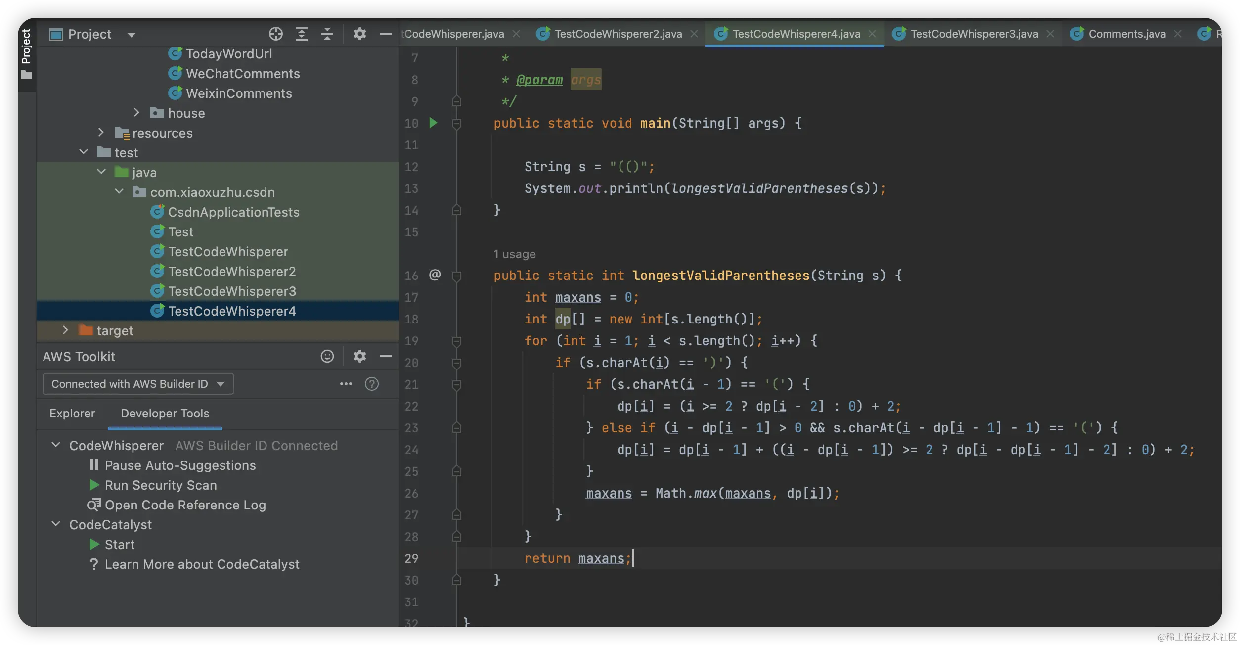 在实际体验中,安装和使用Amazon CodeWhisperer的插件非常简单,能够与流行的IDE无缝集成。虚竹哥在使用IDEA安装了Amazon Toolkit插件,并成功使用了CodeWhisperer生成了一些代码。实验的过程由简单注释生成到复杂的算法解答,最后实验写一个小游戏,CodeWhisperer准确地理解了虚竹哥的意图并生成了相应的代码。
