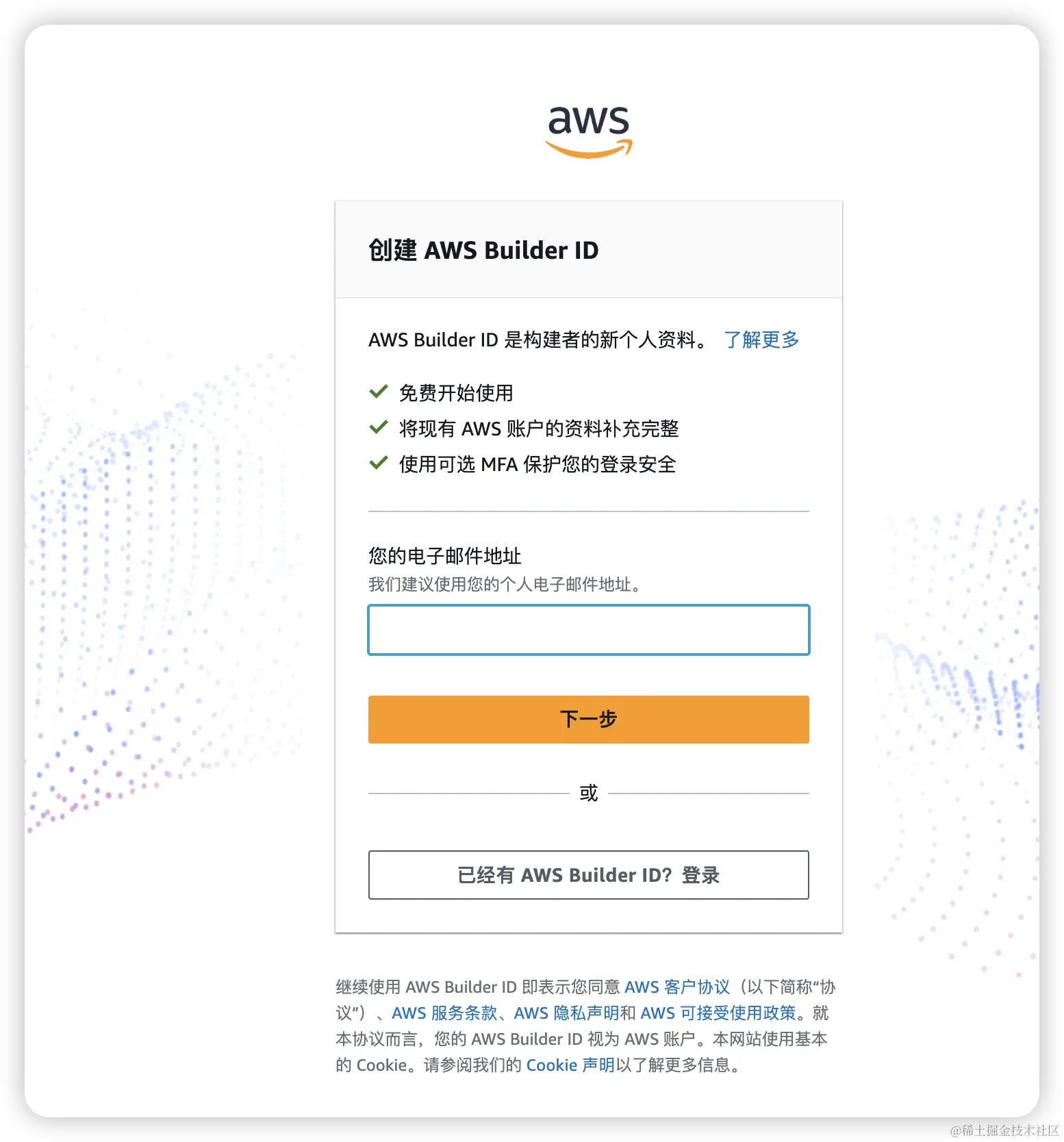 选择“Use a personal email to sign up and sign in with Amazon Builder ID”