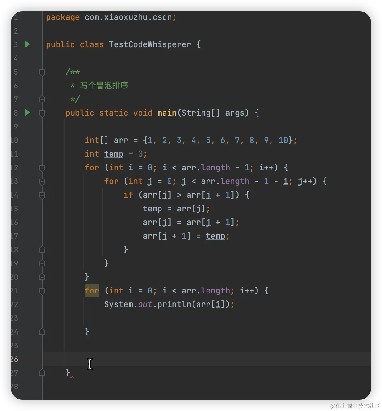 写了一个注释,想写个冒泡排序。自动帮我生成代码了。这个功能非常方便,特别是在你知道要实现什么功能但不确定具体的实现方式时