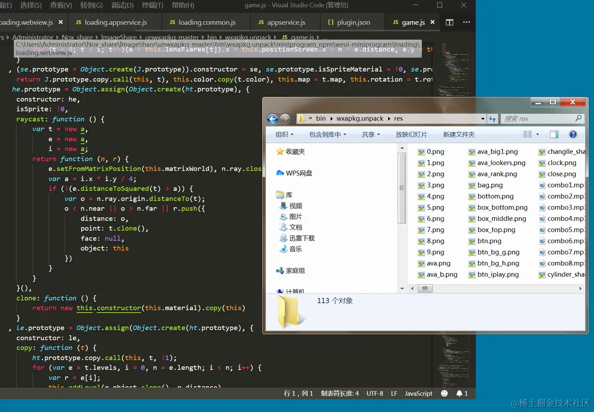 这时,小程序的JS源码、资源等,便都被反编译了出来,如下图:
