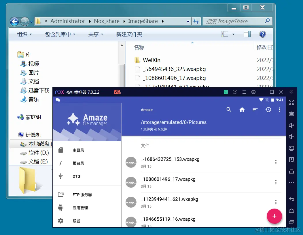 在电脑安装夜神模拟器,并在其中装好微信、RE管理器(rootexplorer)。