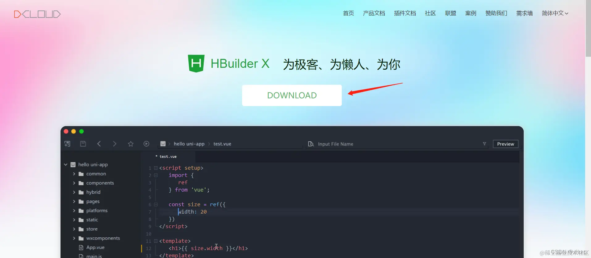 软件介绍 HBuilder X是一款为前端量身订制的多功能代码编辑器,它有飞一样的编码、最完整的语法库和浏览器兼容数据、能够方便制作手机APP,还有保护眼睛的绿柔设计等特点。支持HTML、CSS、JS、PHP的快速开发。 安装步骤 一、下载安装1.在地址栏中直接输入www.dcloud.io2.点击箭头所指,进去过后点击DOWNLOAD。 3.点击过后 选择自己所需要的版本。 HBuilder目前有两个版本,一个是windows版,一个是mac版。下载的时候根据自己的电脑选择适合自己的版本。 4.下好后,进行解压。 5.HBuilderX是免安装的,所以解压过后,点进去就往下拉就看得到HBuilderX图标。 不会创建桌面快捷方式的宝宝看过来: 右击【HBuilderX.exe】这个执行文件,选择【创建快捷方式】,就会在刚刚的文件下出现一个快捷方式,选中后拖到桌面上就行。 6.点进去过后就会弹出选择什么主题。 点进去过后现在自己喜欢的主题就ok啦!2.启动1.进入我们的项目建立阶段,点击“新建项目”,创建项目名称,设置项目所在的位置确定即可,完成之后会在左边的项目栏管理器中出现。