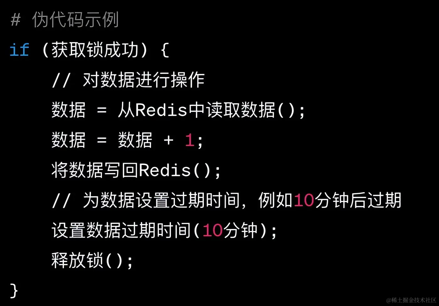 常见的实现方式是通过Redis的SET命令来设置一个键值对,表示锁的状态。 如果某个节点成功地设置了这个键值对,那么它就获得了锁;其他节点会不断尝试获取锁,但只有一个节点会成功。当锁不再需要时,可以通过DEL命令来释放锁。