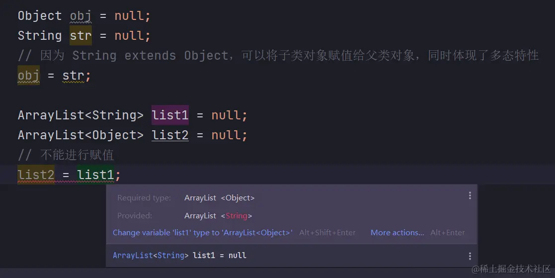 - 实例化指定了类的泛型,那么在该参数就有了明确的类型约定。