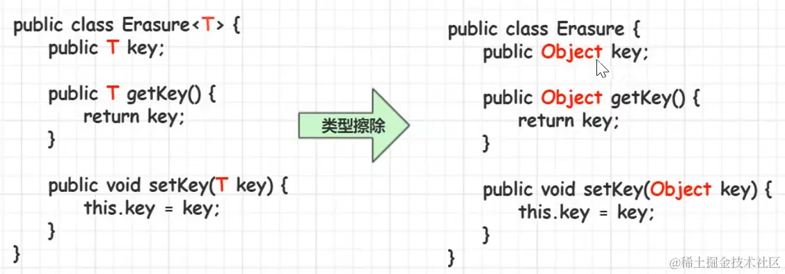 泛型是 Java 1.5 版本才引进的概念,在这之前是没有泛型的,但是,泛型代码能够很好地和之前版本的代码兼容。那是因为,泛型信息只存在于代码编译阶段,在进入 JVM 之前,与泛型相关的信息会被擦除掉,称之为--类型擦除。
