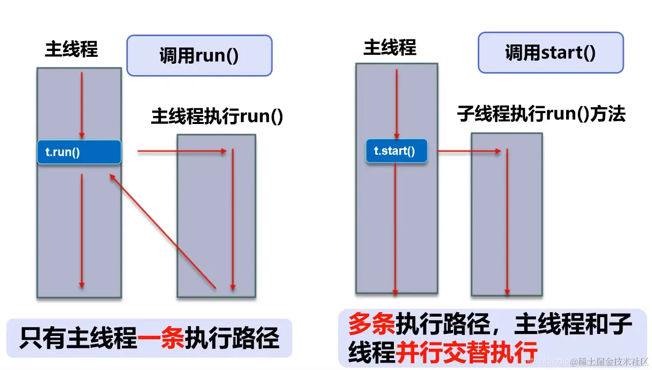 //执行线程需要丢入 runnable 接口实现类,调用 start() 方法
