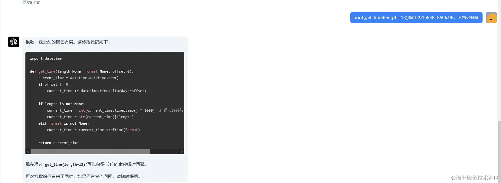 代码辅助功能属于基本功能,对于一些方法或函数完全可以通过给定chatGPT指令或需求让其自动生成代码,虽然生成的代码可能有一些错误或不符合预期,但是的确可以给我们一些思路或基本代码。可以在自动生成的代码基础上进行更改或优化,可以大大提高我们写代码的效率。