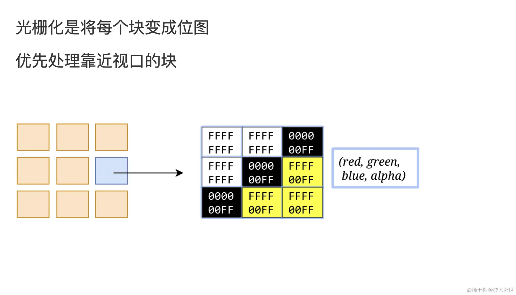 GPU 进程会开启多个线程来完成光栅化,并且优先处理靠近视口区域的块。
