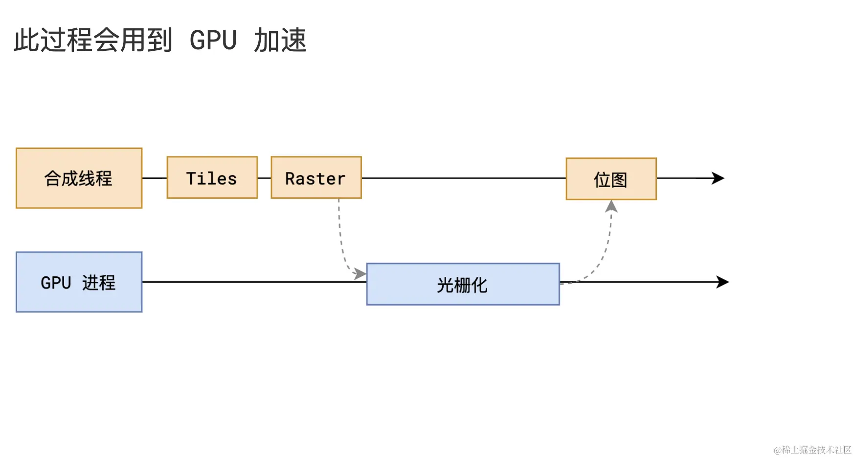 合成线程会将块信息交给 GPU 进程,以极高的速度完成光栅化。