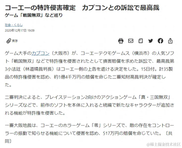 同样是3年后,2020年12月15日,二审知识产权高等法院判决光荣旗下35款游戏侵权,并且赔偿卡普空1.4亿日元。