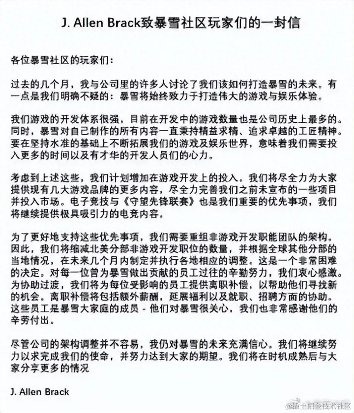 与此同时,竞品拳头公司表演了一波茶艺:暴雪我是你的粉丝,听到这个消息我真难过,我们公司有可多员工都是你的粉丝,我们的心与你们被裁的员工同在~
