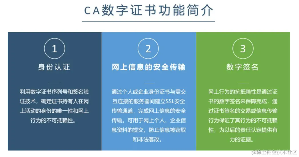 CA(Certificate Authority,证书授权)是由认证机构服务者签发,是数字签名的技术基础保障,也是网上实体身份的证明,能够证明某一实体的身份及其公钥的合法性,证明该实体与公钥二者之间的匹配关系。
