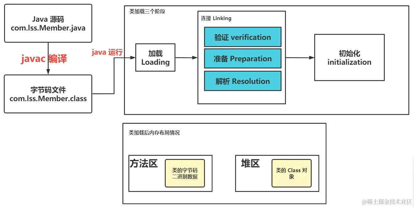 上图中类加载的三个阶段