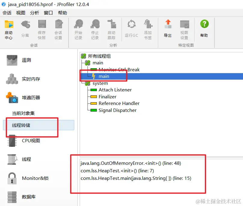 双击这个文件打开,进入 Jprofiler 分析工具