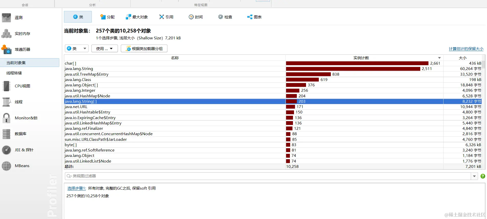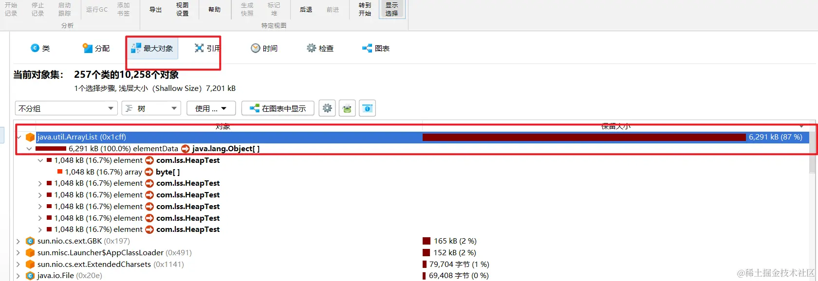 这里明显可以看到对象的大小占 87%