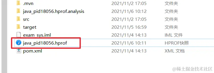 Dumping heap to java_pid18056.hprof ... // 找到这个文件,在项目的根目录