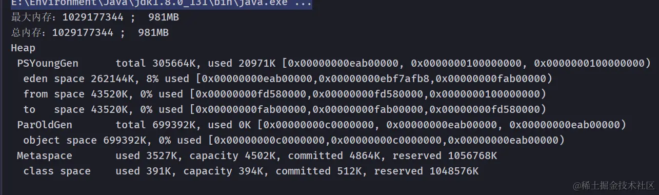// -XX:+PrintGCDetails 打印GC垃圾回收信息